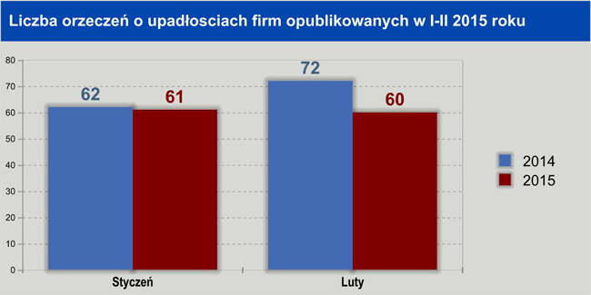 Euler Hermes, spółka z Grupy Allianz, na podstawie oficjalnych danych z Monitora Sądowego i Gospodarczego przeanalizowała sytuację polskich firm w kontekście bankructw. W lutym 2015 roku oficjalnie opublikowano informację o upadłości 60 przedsiębiorstw, wobec 72 w lutym roku ubiegłego.
